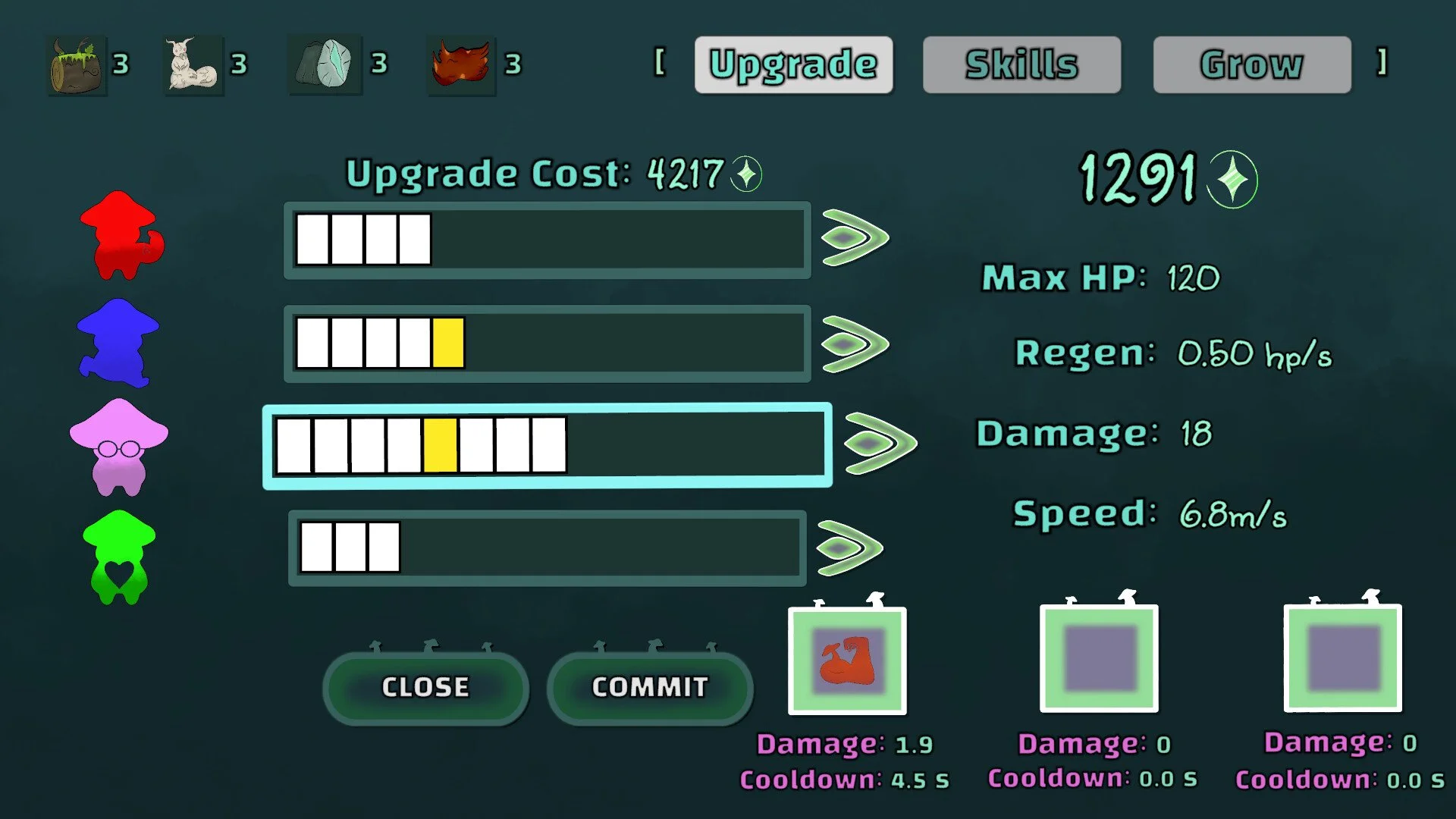With a total of four playable species of Spores, each with a unique ability, 12 other abilities, three tied to each stat, three styles of weapons with modifiers, difficulty settings, and the option to return to the hub after any level, Mycelium can be enjoyed by a wide range of gamers. We put great care into balancing the game and making both aspects of gameplay enjoyable.